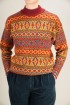 This wool sweater features a bold Nordic-inspired Fair Isle pattern with richly layered geometric bands. Warm tones of red, mustard, and olive are balanced with blue accents, creating a vibrant, vintage look that feels both classic and statement-making. The high ribbed turtleneck adds extra warmth and gives the sweater a cozy, winter-ready finish.